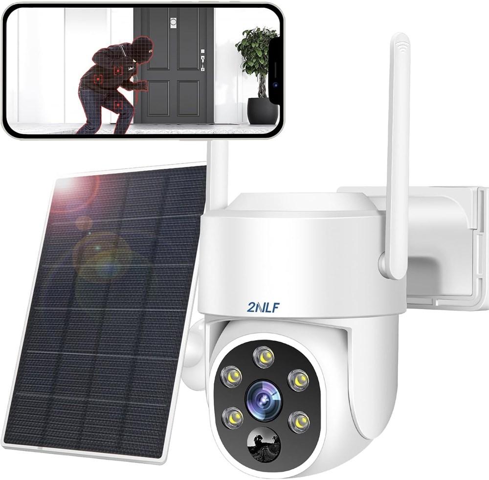 Беспроводная уличная камера видеонаблюдения 2NLF 2.5K с солнечной панелью, Wi-Fi 2.4 ГГц, камера для домашней безопасности, панорамный обзор 360°, автоматическое отслеживание людей, цветное ночное видение с доставкой по Душанбе, Худжанд и по всему Таджикистану.