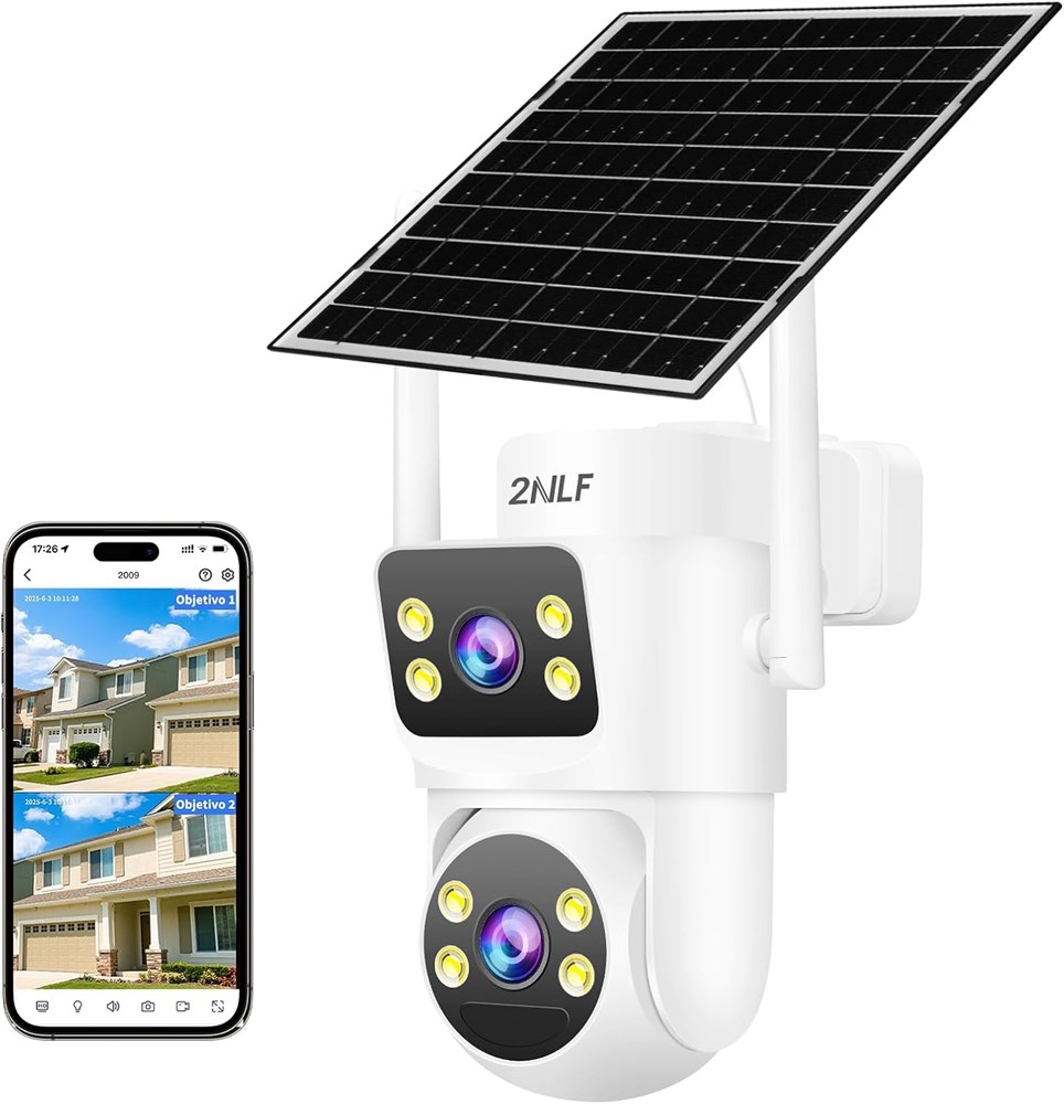 Уличная камера видеонаблюдения 2NLF с питанием от солнечной батареи, 4G LTE, двумя объективами по 3 МП, PTZ-камерой на 360°, пассивным ИК-датчиком движения, цветным ночным видением, аккумулятором 8000 мА·ч, водонепроницаемостью IP66, без подключения к Wi-Fi с доставкой по Душанбе, Худжанд и по всему Таджикистану.