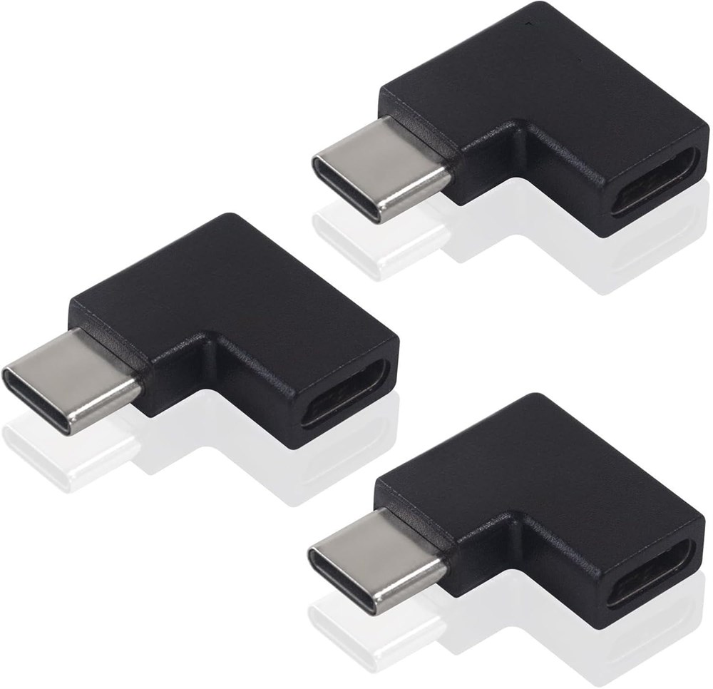 Комплект из 3 адаптеров USB-C с прямым углом, удлинительный кабель USB-C 10 Гбит/с (штекер-гнездо), адаптер Type-C с углом 90 градусов для быстрой передачи данных, зарядки, внешнего аккумулятора, ноутбука, телефона, коммутатора, прочного алюминиевого корп