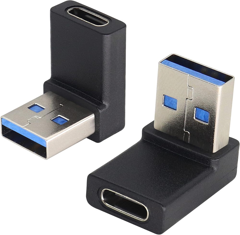 AAOTOKK Угловой USB 3.0 A USB C адаптер 90 градусов USB 3.0 A папа - USB Type C мама (OTG) для ПК, ноутбука, внешнего аккумулятора, зарядного устройства и других устройств USB и Type C (UP-черный)