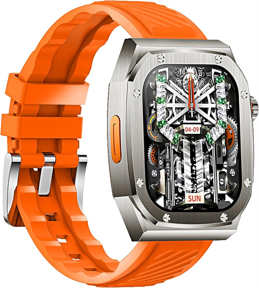 Мужские смарт-часы Aishini с функцией звонков по Bluetooth, большим сенсорным экраном IPS 2,1 дюйма, водонепроницаемостью IP68, 460 мА·ч, более 120 спортивных режимов, срок службы батареи 70 дней, фитнес-часы (оранжевый + серебристый)