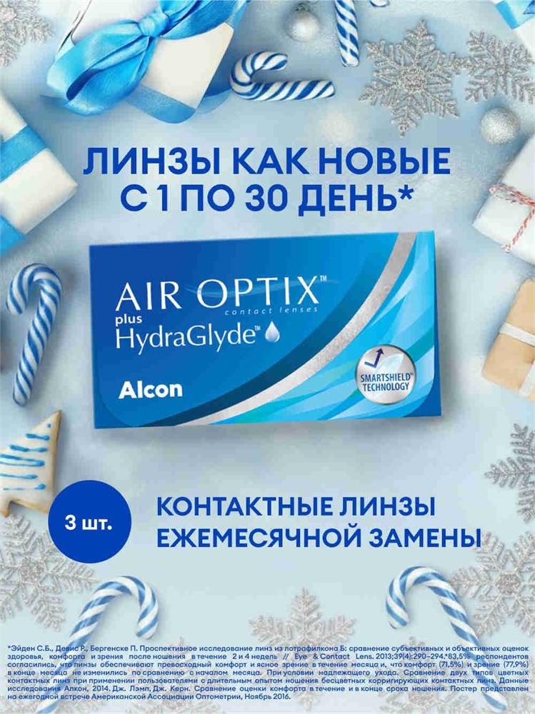 Линзы для контактных линз Alcon AIR OPTIX plus HydraGlyde, в упаковке 3 штук, с силой -2.75 и базовой кривизной 8.6, предназначены для ношения в течение 1 месяца. Эти линзы являются ежемесячными. Бесплатная доставка по всему Таджикистану.