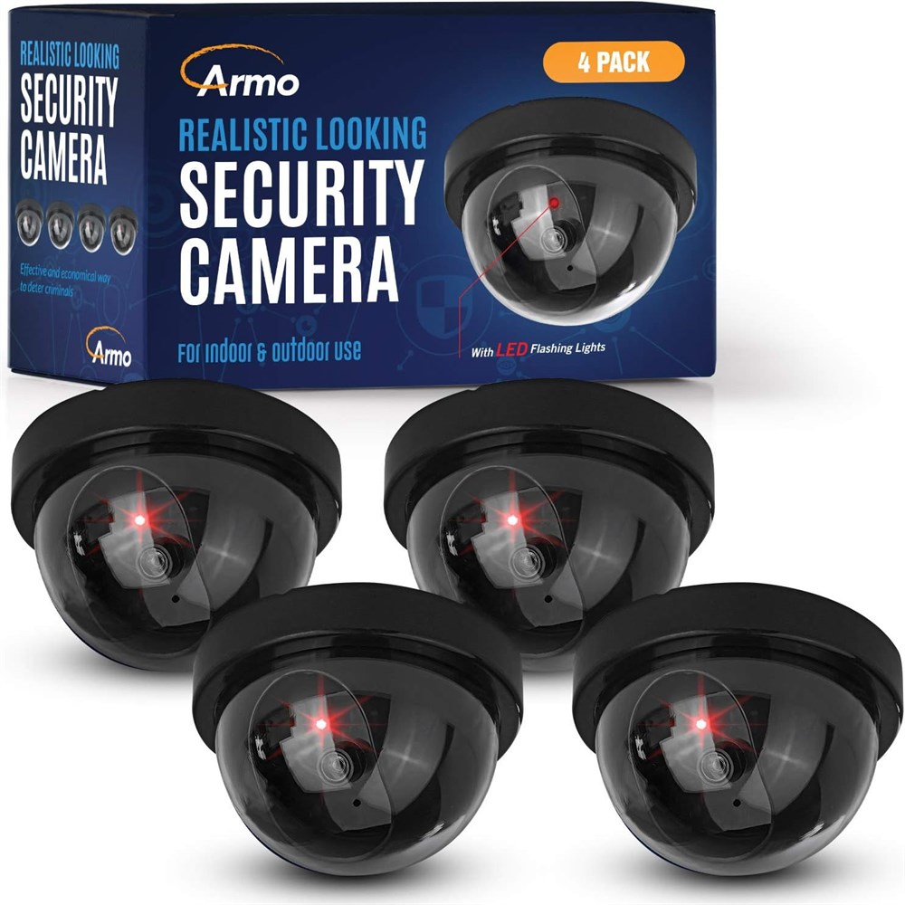 ARMO (4 шт.) Купольная камера видеонаблюдения с реалистичным изображением, мигающим красным светодиодом, для использования внутри и снаружи помещений, для дома и бизнеса.