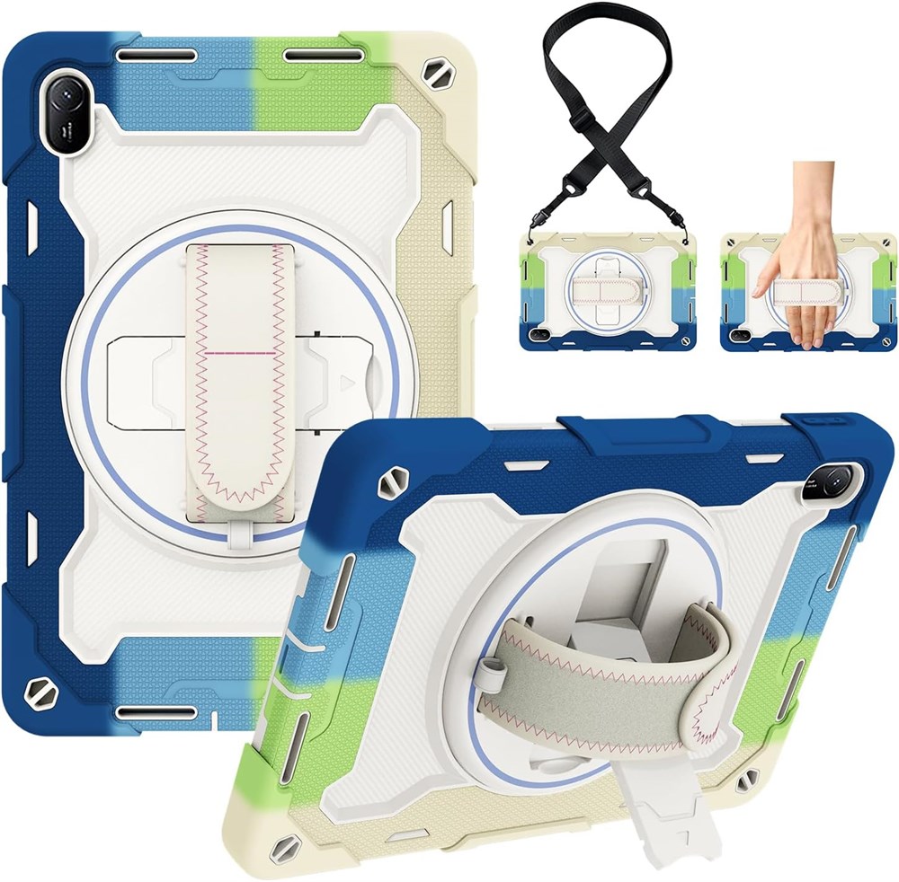 Чехол Arsey для Huawei Matepad SE 11 дюймов (2024) с плечевым ремнем для детей, противоударный чехол из силикона и поликарбоната, вращающаяся складная скрытая подставка, цвет: синий доставляем курьером по городам и районам Таджикистана.