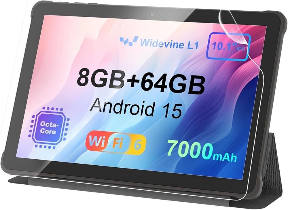 Планшет AWOW 10 дюймов, Android 14: новейший восьмиядерный процессор 2025 года, 8 ГБ ОЗУ + 64 ГБ памяти 1 ТБ TF, Wi-Fi 6, Bluetooth 5.0, аккумулятор 5000 мАч, двойная камера 1280 x 800 FHD GMS, в комплекте чехол.