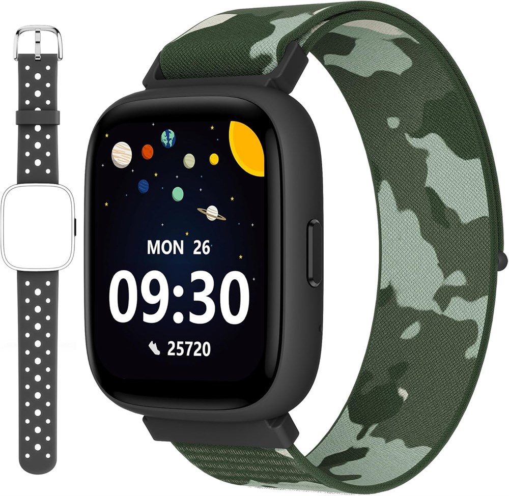Умные часы BIGGERFIVE для детей, 1,8-дюймовый фитнес-трекер с шагомером, пульсометром, монитором сна, водонепроницаемостью IP68, счётчиком калорий и шагов, головоломкой с приложением/без него для девочек и мальчиков-подростков 5–16 лет, 2 ремешка