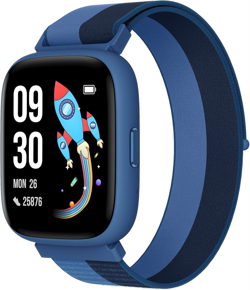 Умные часы BIGGERFIVE для детей, 1,8-дюймовый фитнес-трекер, шагомер, пульсометр, водонепроницаемость IP68, монитор сна, счётчик калорий и шагов, головоломки с приложением и без него для девочек, мальчиков и подростков 5–16 лет, нейлон