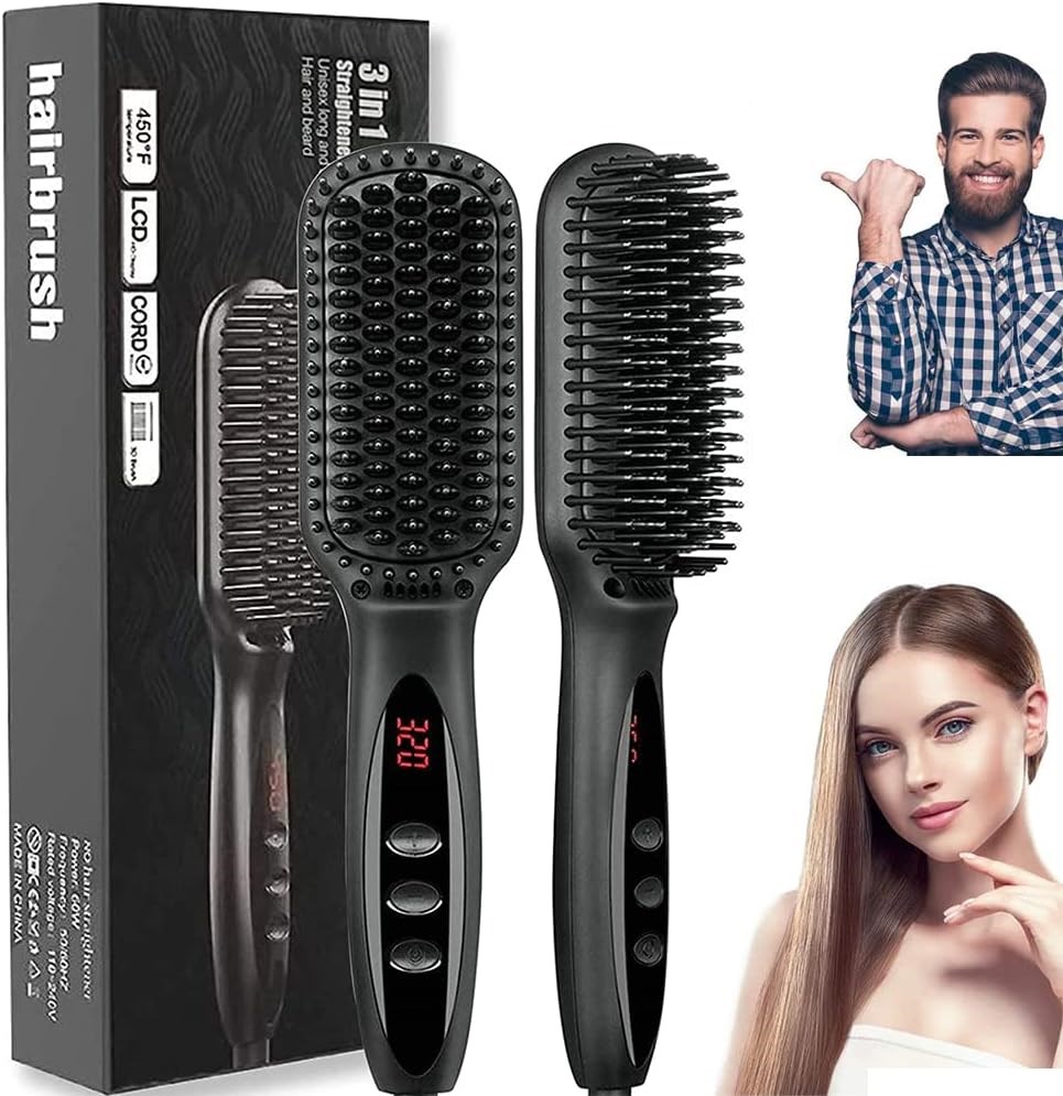 C доставкой по всему Таджикистану: Ионная щетка для выпрямления волос BIKUUL с защитой от ожогов и автоматической блокировкой температуры, керамическая расческа-выпрямитель для волос PTC для женщин, многофункциональная расческа для волос и щетка-выпрямитель для бороды 3-в-1 для мужчин