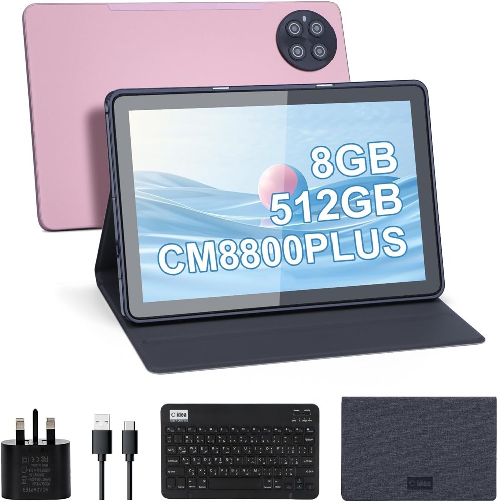 Планшет C idea 10.1" на Android 13, HD IPS-экран 1280x800, 8 ГБ ОЗУ, 512 ГБ памяти, Wi-Fi, Bluetooth, GPS, двойная камера, длительное время автономной работы, CM8800Plus (розовый)