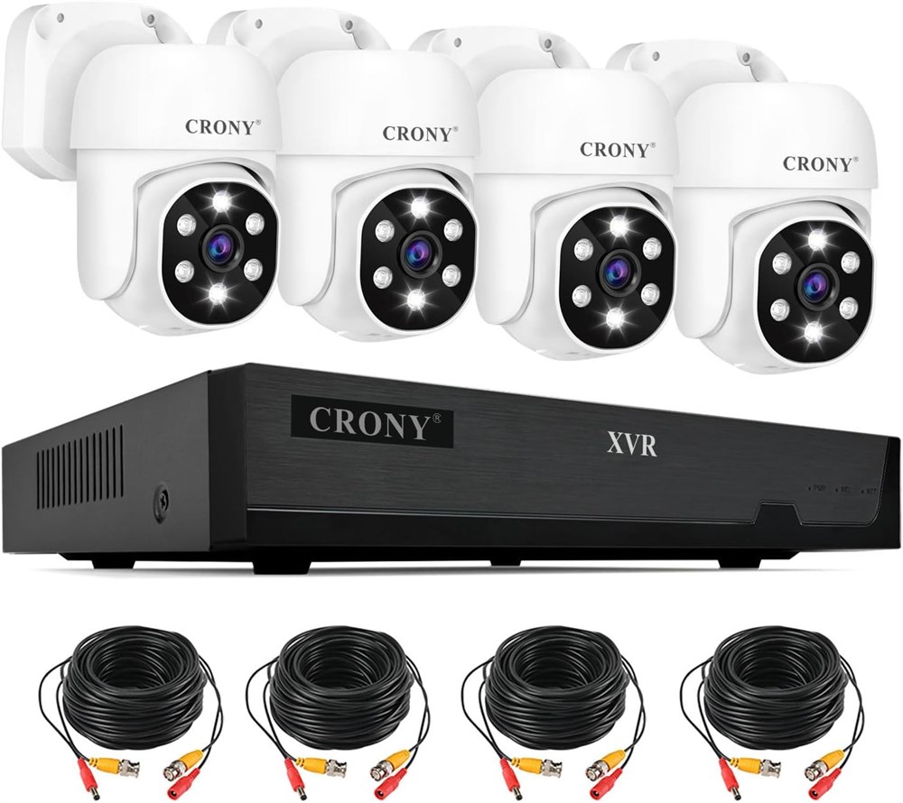 Система проводной видеонаблюдения CRONY - NVS004 5-1 5MN FHD, 4-канальное видеонаблюдение, 5-мегапиксельная камера видеонаблюдения для улицы и помещения, комплект с 4 HD-камерами, 1 камерой видеонаблюдения со звуком, ночным видением, детектором движения
