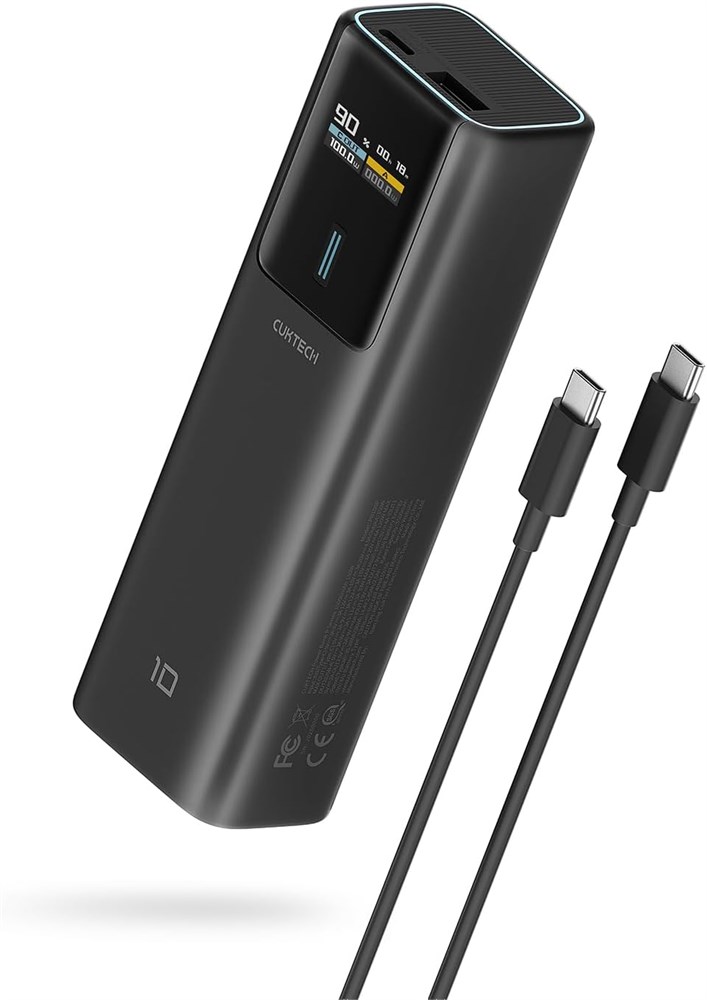 Внешний аккумулятор CUKTECH 10 мощностью 100 Вт, ёмкостью 10000 мА·ч, с цифровым дисплеем, внешний аккумулятор для мобильных телефонов iPhone 16/15/14/13 серии, Samsung Galaxy S24/S23/S22, iPad Air/Pro, Xiaomi, MacBook, Dell и т. д.