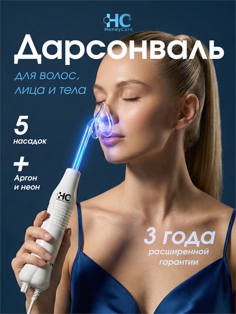 Профессиональный прибор HoneyCare с пятью насадками - дарсонваль для ухода за волосами, кожей лица и телом