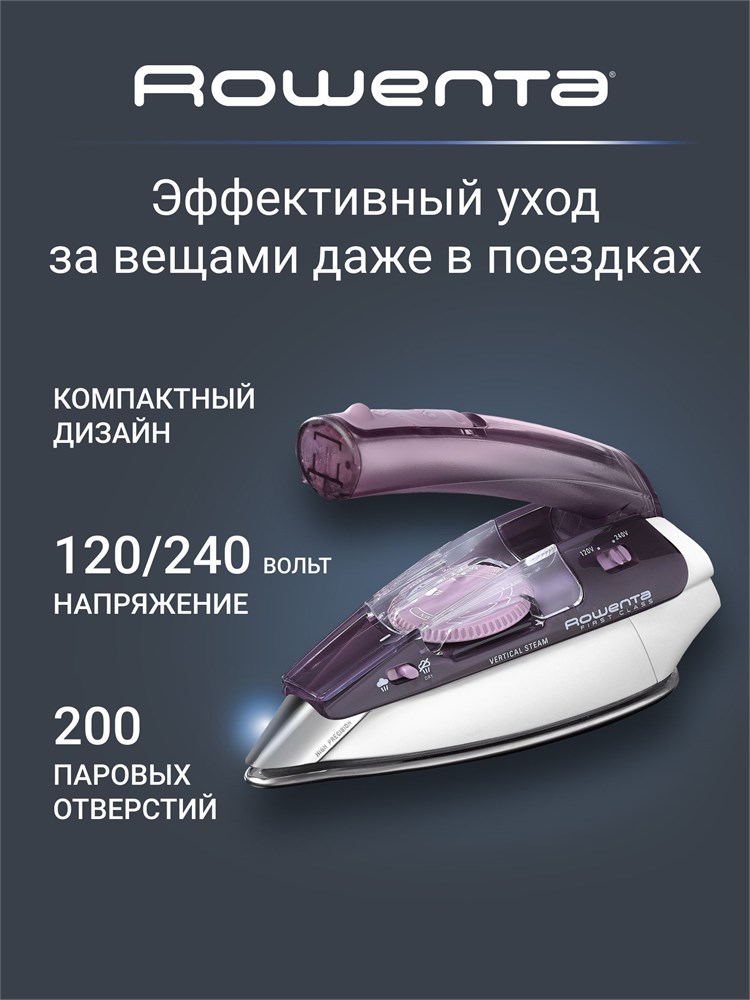 Фиолетовый утюг для одежды Rowenta First Class DA1511F1, предназначенный для использования в дороге
