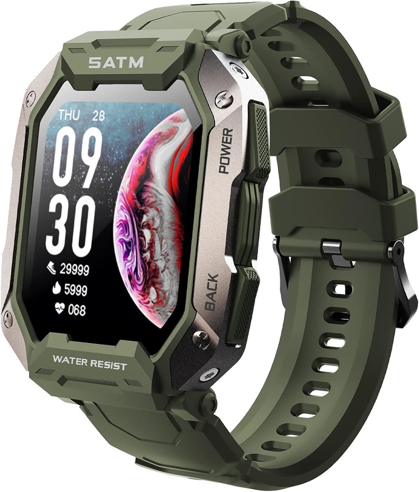 Умные часы EIGIIS Military для мужчин, тактические спортивные часы для активного отдыха, водонепроницаемые, 5ATM, 1,71-дюймовый фитнес-трекер, монитор сердечного ритма и сна, совместимые с Android, iPhone, Samsung (зеленые), Bluetooth