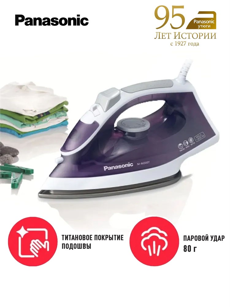 Утюг Panasonic NI-M300TVTW работает на электричестве и использует пар для глажки