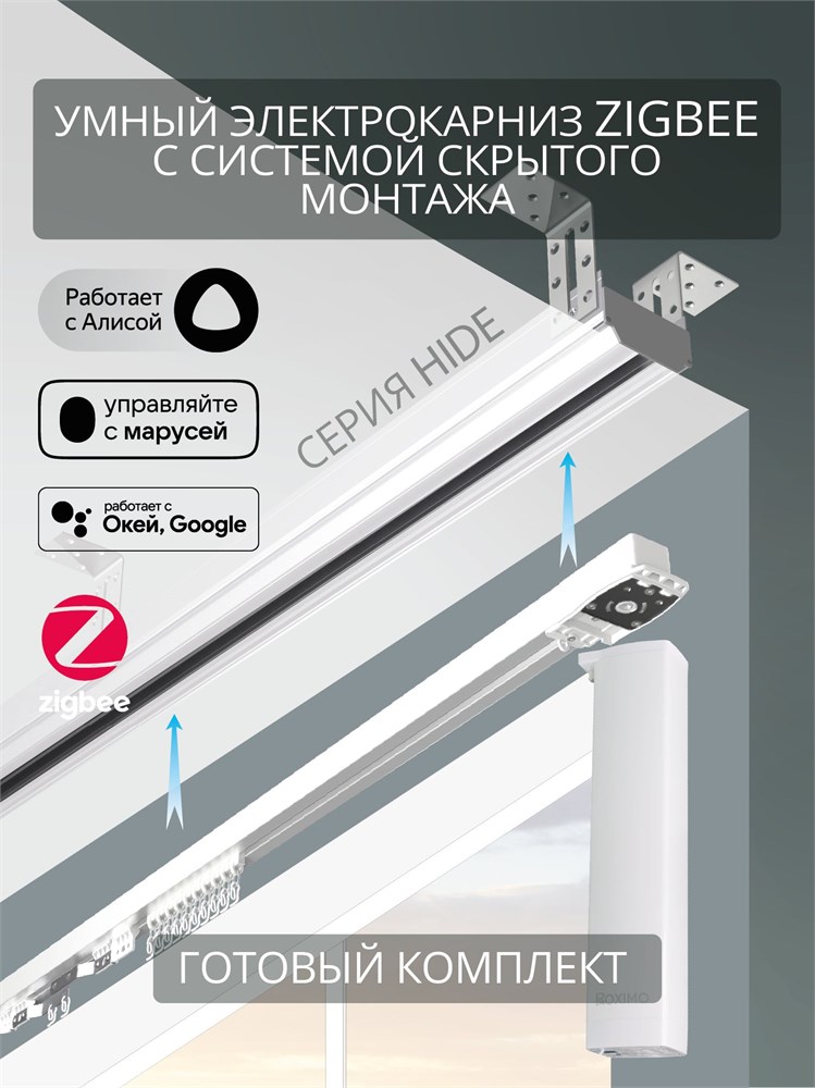 Белый электрический карниз Roximo ZigBee длиной 3.3 метра предназначен для скрытого монтажа на натяжных потолках с доставкой по всему Таджикистану: Душанбе, Худжанд, Бохтар, Хорог, Кульяб, все города и районы.