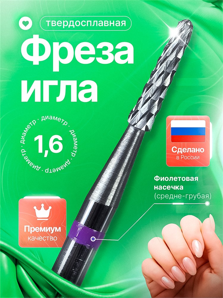 Фреза для ухода за ногтями, изготовленная из твердого сплава, с иглой для точной работы, диаметром 1,6 мм, окрашенная в фиолетовый цвет, под номером 314