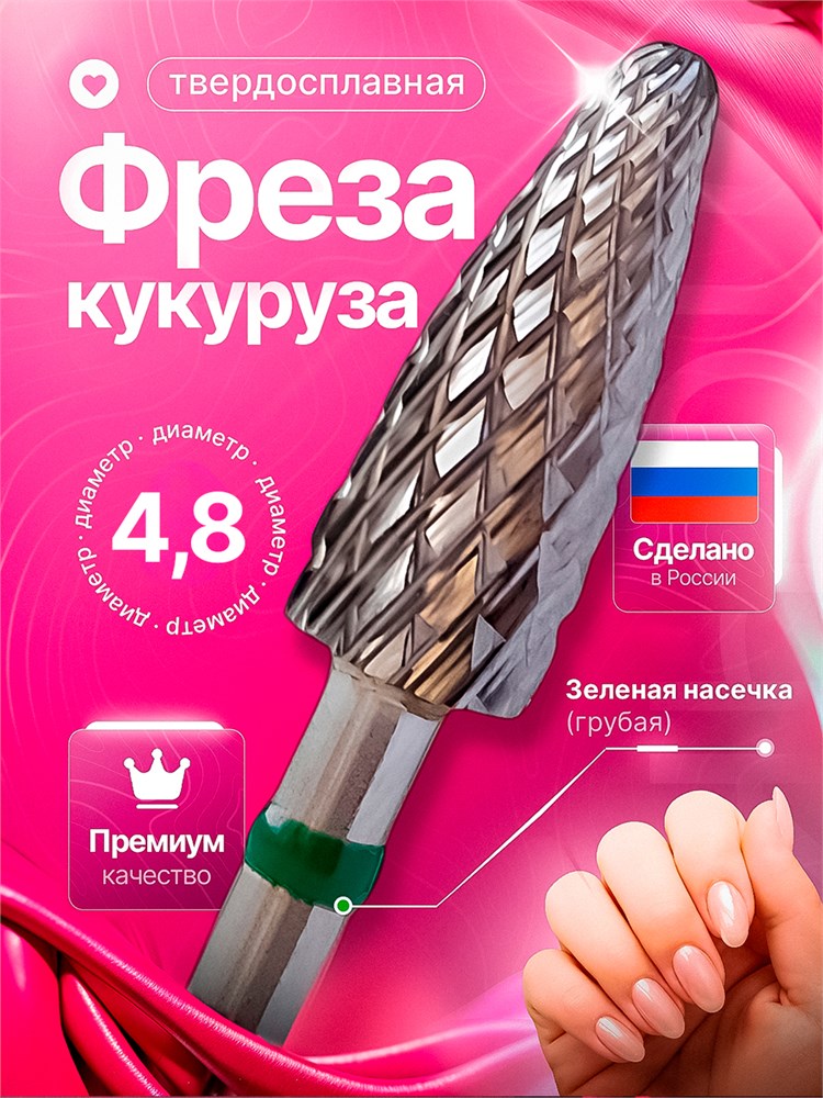 Фреза для ухода за ногтями и стопами, с твердосплавным насадком типа кукуруза, диаметром 4.8 мм. Артикул 1000358 с доставкой по всему Таджикистану: Душанбе, Худжанд, Бохтар и все города/районы.