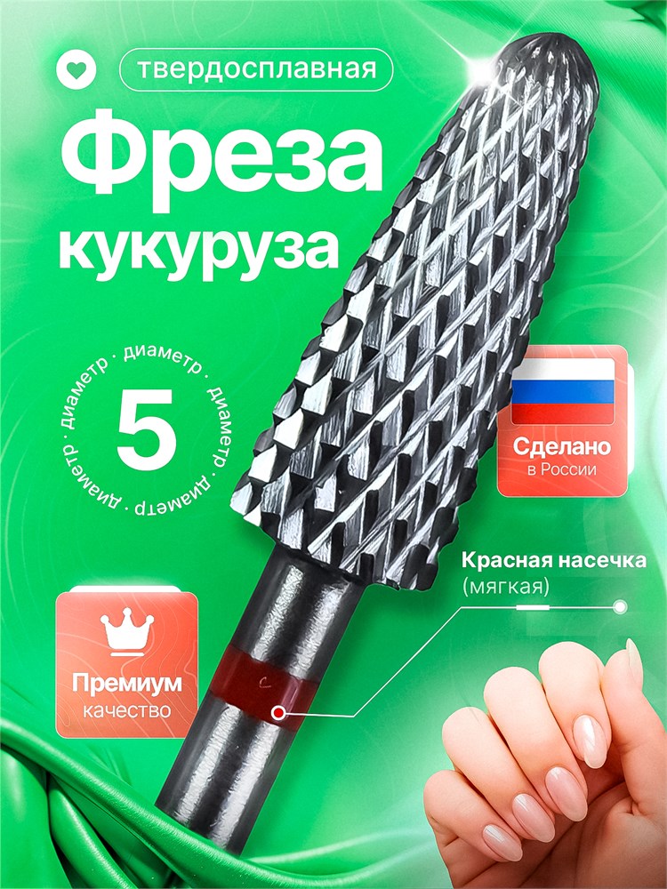 Твердосплавная фреза для маникюра и педикюра, модель "Кукуруза" 111 D с диаметром 5.0 мм, имеет красную насечку