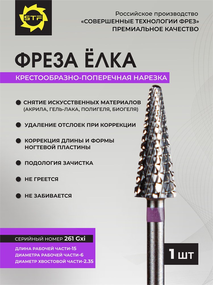 Фреза для педикюра и маникюра с формой "Ёлка" (фиолетовая насечка) из твердого сплава предназначена для удаления покрытия 261GXf с доставкой по всему Таджикистану: Душанбе, Худжанд, Бохтар и все города/районы.