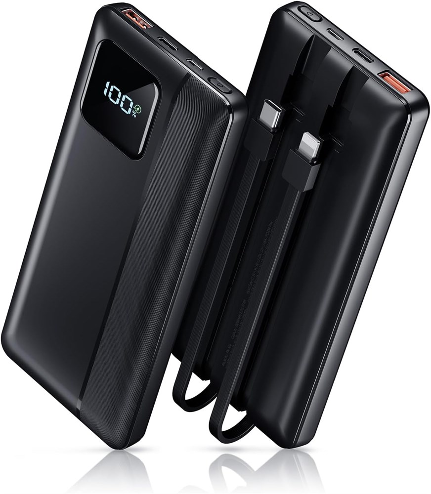 Портативное зарядное устройство Garlo Power Bank 10000 мАч 22,5 Вт, быстрая зарядка, мини-порт со встроенными кабелями USB C и IOS, аккумулятор для мобильных телефонов iPhone, Android, iPad, Samsung, Google Pixel, LG