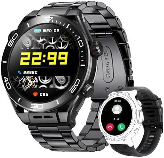 Смарт-часы 4G Ultra Round Shape на Android с двойной камерой, предустановленными приложениями на ОС Android и AMOLED-дисплеем | Спортивный и фитнес-трекер с 4 ГБ ОЗУ, 64 ГБ ПЗУ и слотом для SIM-карт (3 ремешка) (черный)
