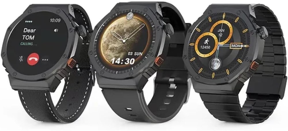 Универсальные умные часы RW41 с круглым AMOLED-дисплеем, тремя парами ремешков и беспроводным зарядным устройством для мужчин и мальчиков, цвет черный с доставкой по всему Таджикистану.
