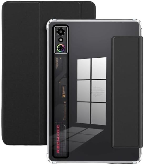 Чехол Gruattreay, совместимый с игровым планшетом Nubia RedMagic 3 Pro 9,06 дюйма, выпущенным в 2025 году, с магнитной подставкой, прозрачной задней крышкой из кожи (черный) доставляем курьером по городам и районам Таджикистана.