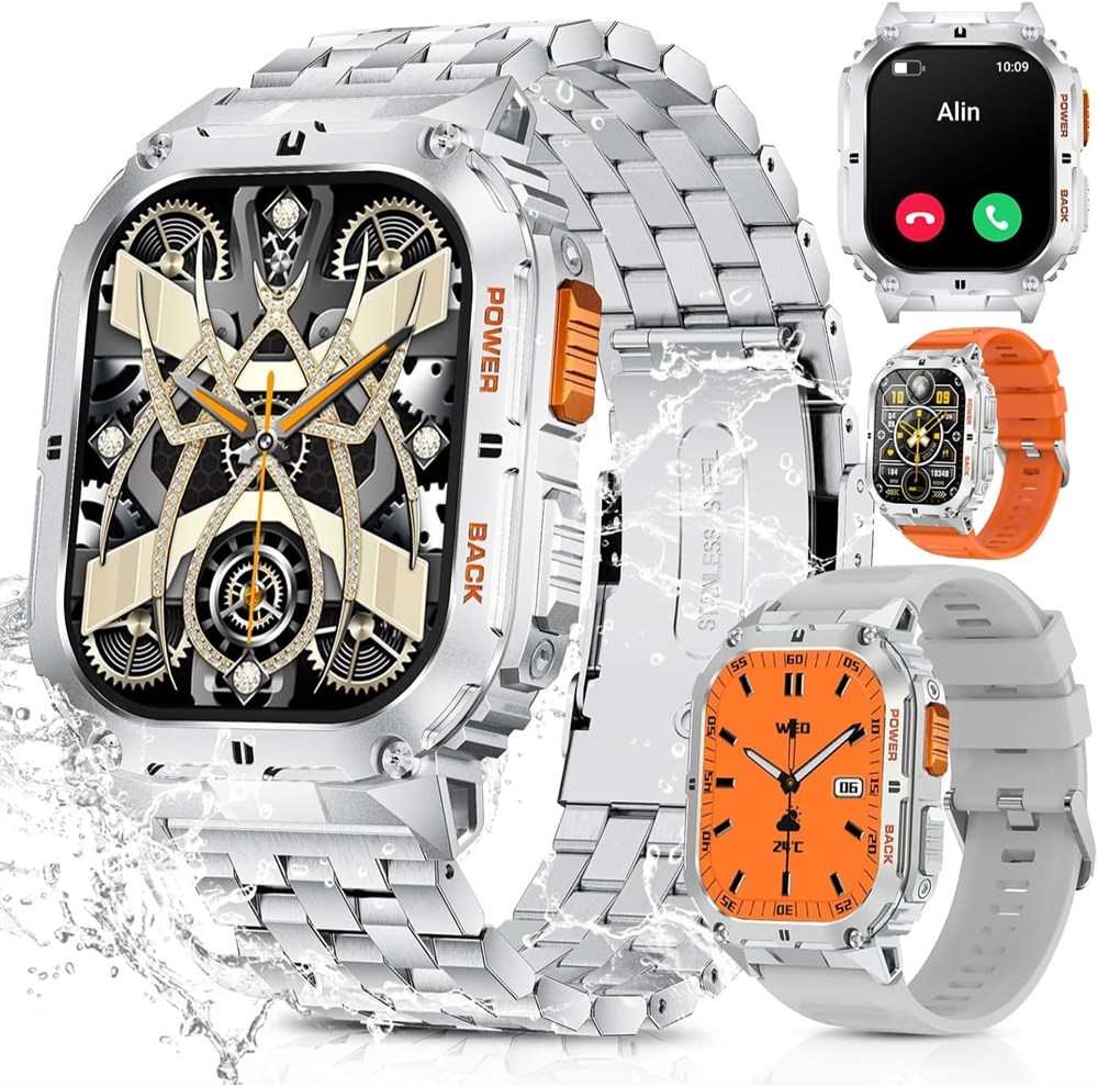 Мужские тактические смарт-часы GStorm Military AMOLED с дисплеем 1,95 дюйма, прочные, для активного отдыха, с 3 ремешками, водонепроницаемые и ударопрочные, более 100 спортивных режимов, компас, мониторинг здоровья, функция вызова (серые) с доставкой по всему Таджикистану.