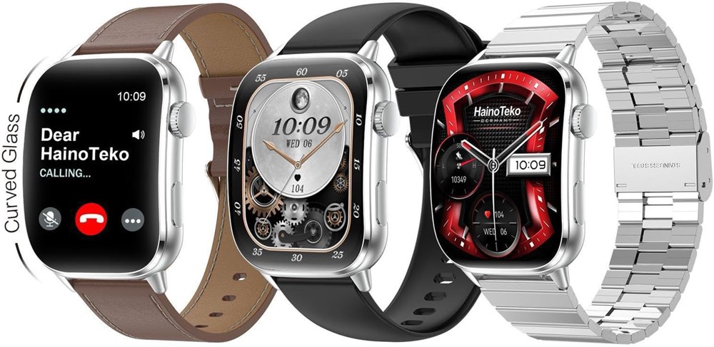 Водонепроницаемые смарт-часы HainoTeko HainoTeko-14 AMOLED с 10-дневным сроком службы батареи, 3 парами ремешков и зарядным кабелем, разработанные для женщин и мужчин (серебристый)