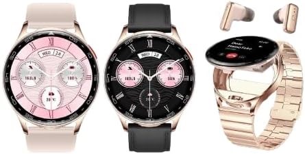 Водонепроницаемые умные часы HainTeko ST 9 с наушниками, золотистого цвета, тремя парами ремешков и беспроводным зарядным устройством для женщин, женские круглые умные часы