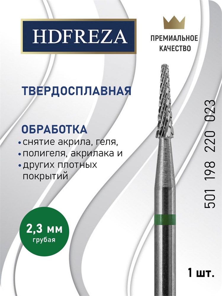 Твердосплавная фреза HDFREZA предназначена для создания арок под ногтем с диаметром 2.3 мм. Ее зернистость - грубая, форма - конусная. Артикул: 501 198 220 023 с доставкой по всему Таджикистану: Душанбе, Худжанд, Бохтар и все города/районы.