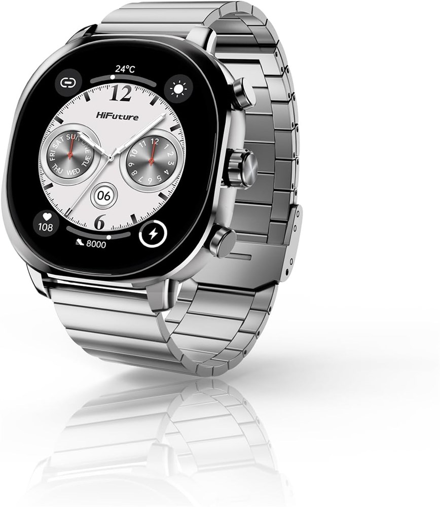Умные часы HiFuture AIX из нержавеющей стали, 1,43-дюймовый AMOLED-дисплей, беспроводные звонки, мониторинг здоровья, 10-дневный срок службы батареи, водонепроницаемость IP67 — серебристый с доставкой по всему Таджикистану.