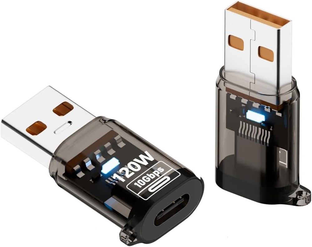 Адаптер HTGuoji USB 3.2 Digital Display A (штекер/гнездо USB-C) OTG, 10 Гбит/с, мониторинг мощности в режиме реального времени, быстрая зарядка до 120 Вт для ноутбуков, внешних аккумуляторов и других устройств USB-A (2 шт.) (черный)