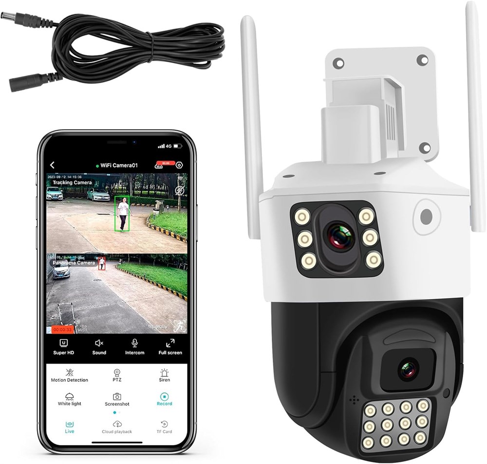 Уличная камера видеонаблюдения INSEETECH с двумя объективами, автоматическим зумом и слежением, ночным видением на расстоянии 98 футов, круглосуточной записью, защитой IP66, прожектором, двусторонней аудиосвязью, обнаружением человека и сиреной, Wi-Fi и проводной PTZ-камерой. с доставкой по Душанбе, Худжанд и по всему Таджикистану.