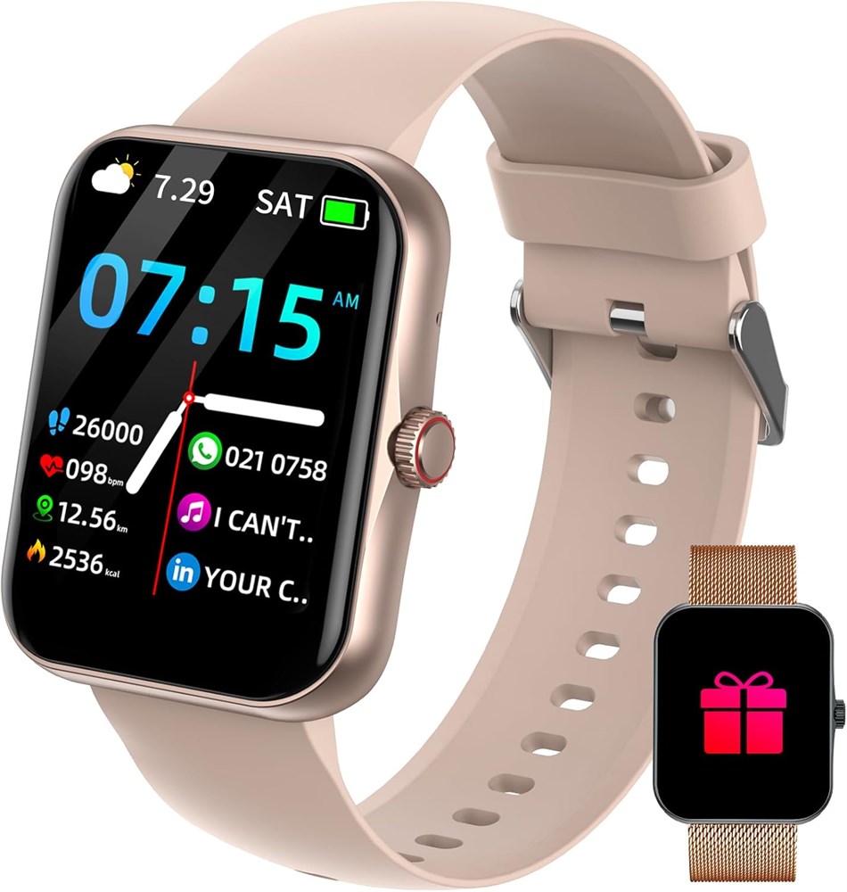Умные часы JUBUNRER для женщин и мужчин с сенсорным экраном 1,83 дюйма, пульсометром, шагомером, счетчиком калорий, защитой от воды IP68, iOS Android, Рождество [2 ремешка]