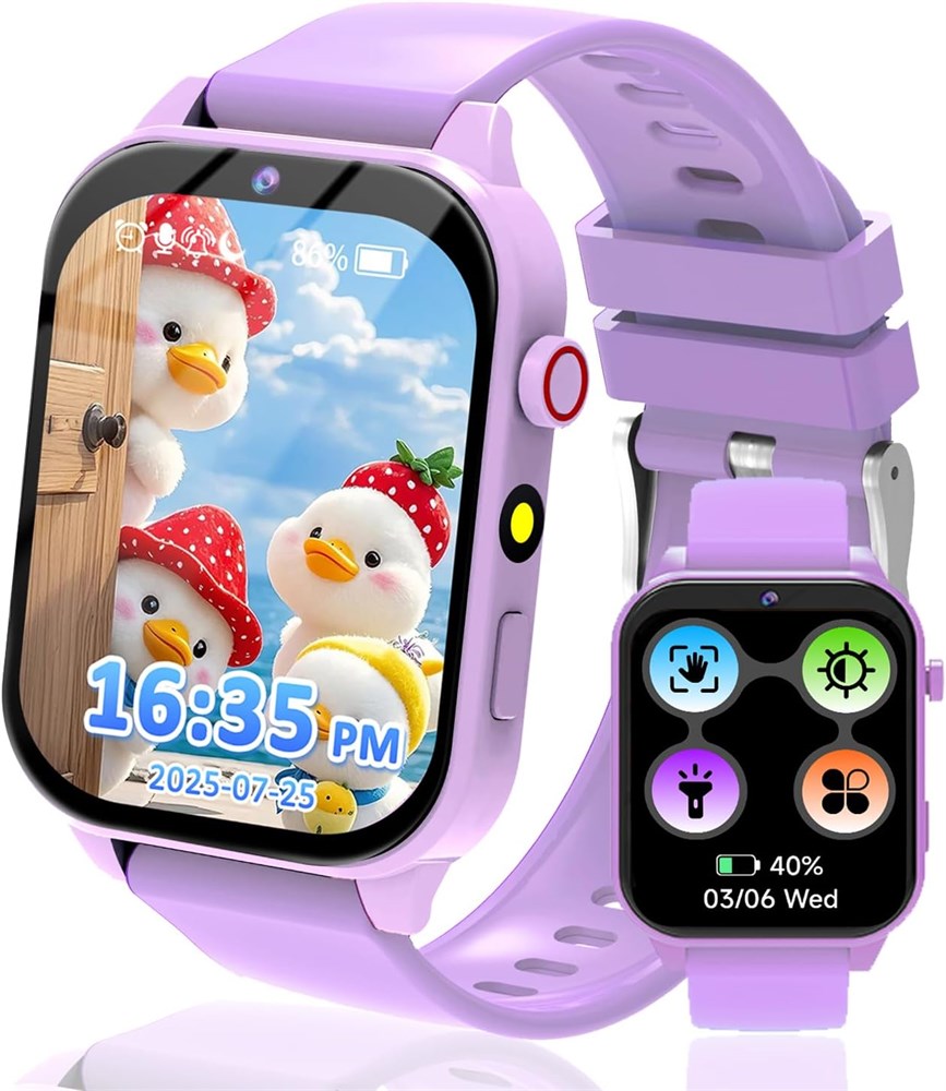 Умные часы kaacly для детей, подарок для мальчиков и девочек с 1,83-дюймовым экраном, самодельными обучающими карточками, музыкальными сказками на ночь, умные часы, подарки на день рождения, игрушка для детей 4, 5, 6, 7, 8+ (фиолетовый)