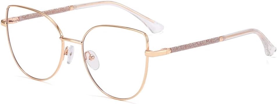 Очки Kachawoo Anit Blue Light, большие, кошачий глаз, металлическая блестящая оправа, компьютерные очки для женщин и мальчиков с линзами Blue Ray (золотые с прозрачным покрытием)