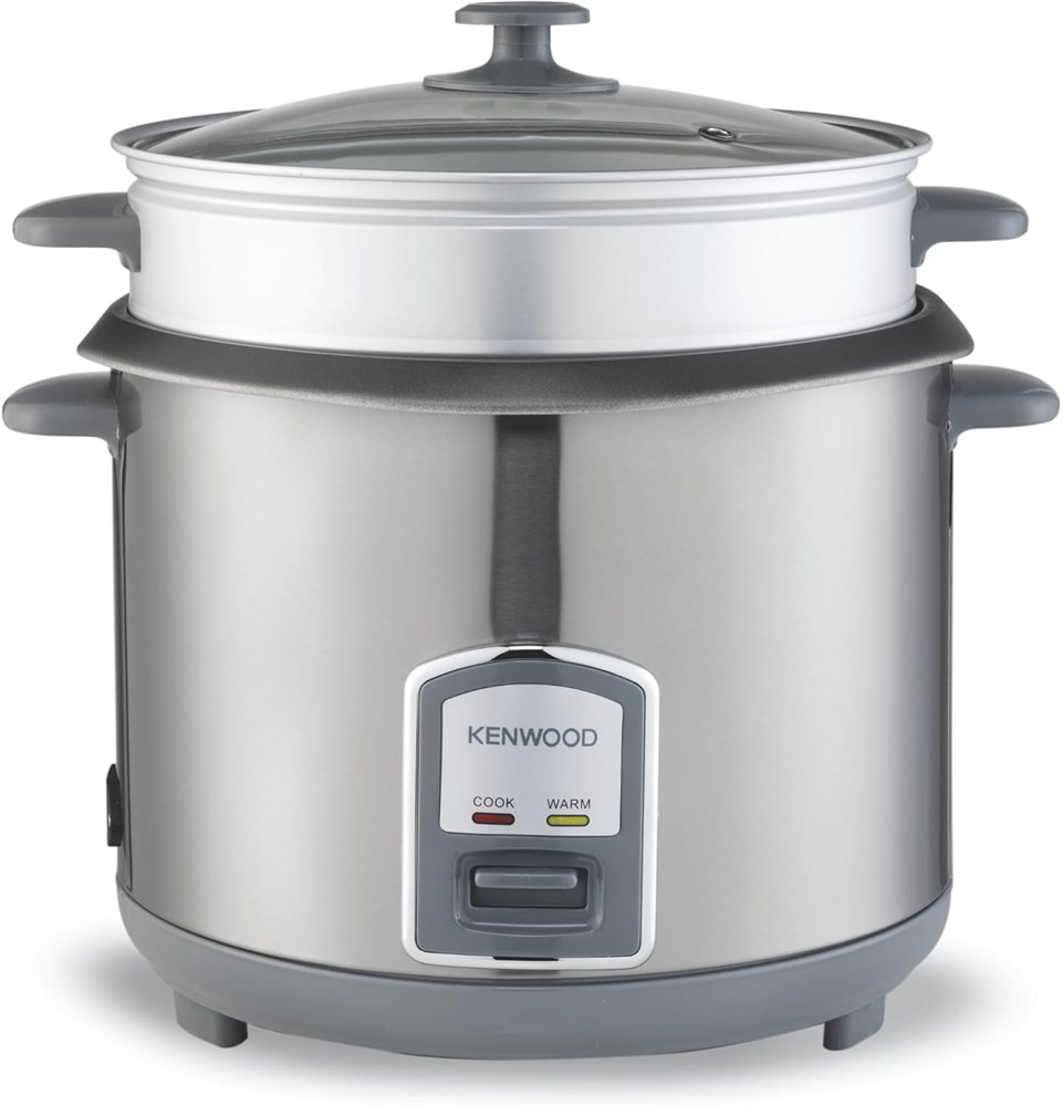 Рисоварка KENWOOD 2-в-1, 2,8 л, 16 чашек, с корзиной для приготовления на пару, антипригарной кастрюлей, крышкой из закаленного стекла, индикаторами подогрева и приготовления, держателем для лопатки, съемным шнуром питания, RCM28.000SS, серебристый