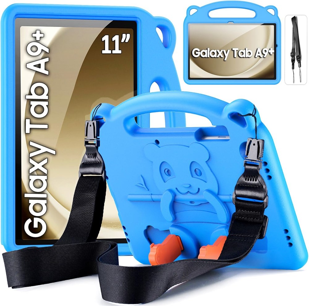 Детский чехол для Samsung Galaxy Tab A11+ Plus 2025/A9+ 11 дюймов (2023), лёгкий, ударопрочный, с плечевым ремнём, ручкой и подставкой, синий