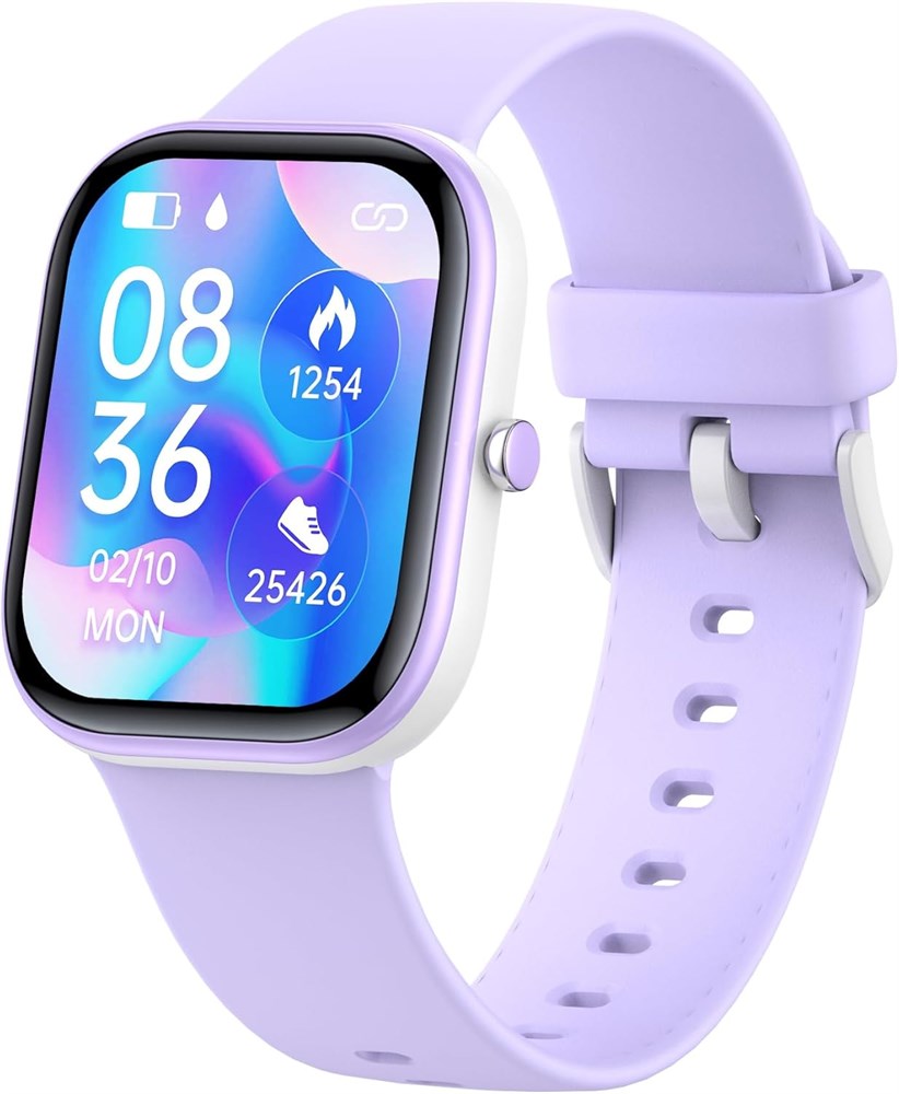 Детские фитнес-часы для мальчиков, девочек и подростков, идея подарка для детей 6-14 лет, детские умные часы с монитором сна, шагомером, секундомером, умными часами-будильником, циферблатом и сенсорным экраном (фиолетовый)