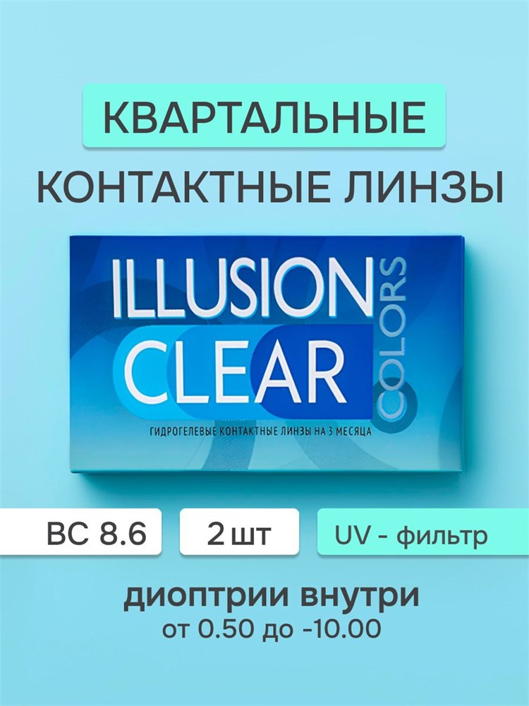 Линзы для контактных линз ILLUSION CLEAR с параметрами: базовая кривизна 8.6, диоптрии -7.00, диаметр 14. Бесплатная доставка по всему Таджикистану.