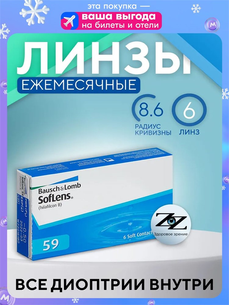 Контактные линзы месячного ношения Soflens 59 в количестве 6 штук с оптической силой -2.50, радиусом кривизны 8.6 от производителя Bausch + Lomb. Бесплатная доставка по всему Таджикистану.