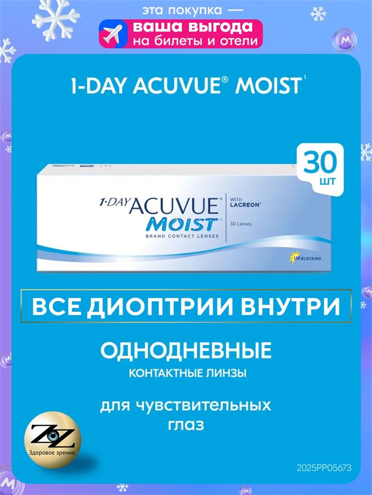 Однодневные контактные линзы 1-Day Acuvue Moist в количестве 30 штук с диоптриями -7.50 и 8.5. Бесплатная доставка по всему Таджикистану.
