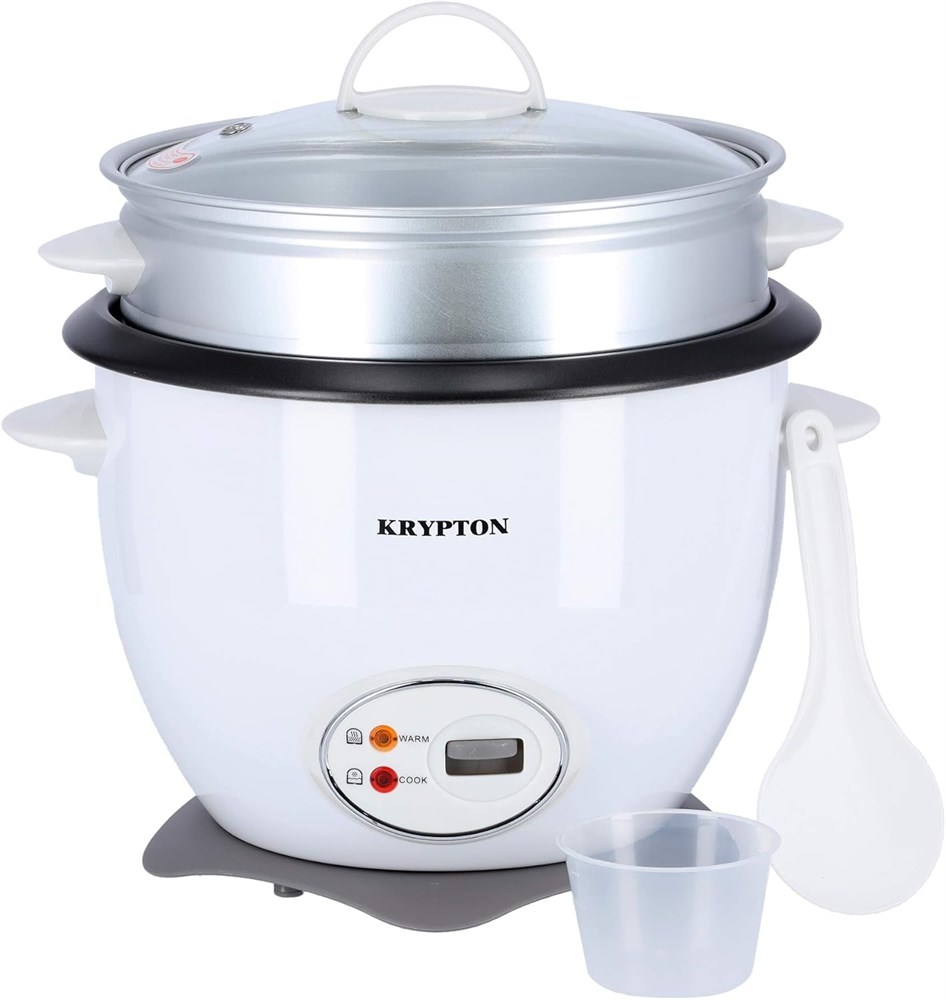 Данный товар доставим по всему Таджикистану: Рисоварка Krypton 700 Вт, 1,8 л, с функцией приготовления на пару | внутренняя кастрюля с антипригарным покрытием, автоматическое приготовление, легкая очистка, Krypton, белая, KNRC5283