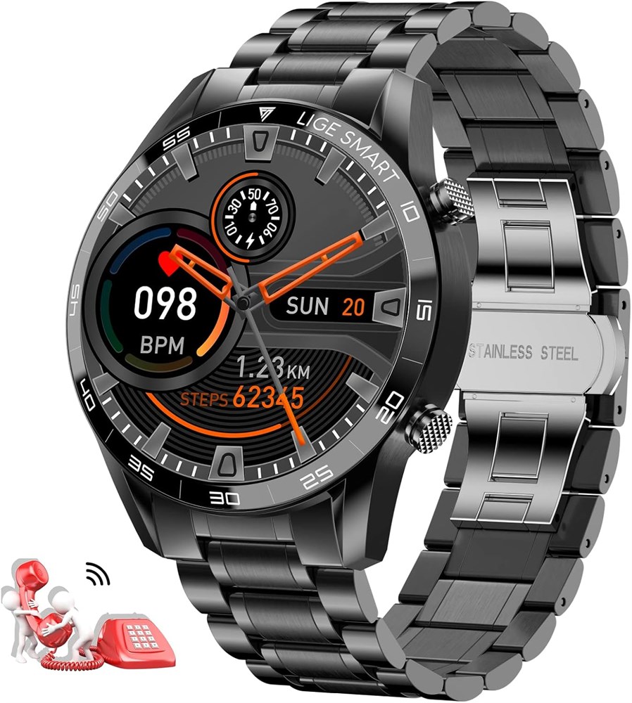 Умные часы LIGE для мужчин, совместимые с телефонами Android и iOS (прием и совершение звонков), новейший фитнес-трекер 2022 года с цветным дисплеем 1,3" HD, функциями отслеживания звонков, сообщений, пульса и сна, водонепроницаемый трекер активности IP67