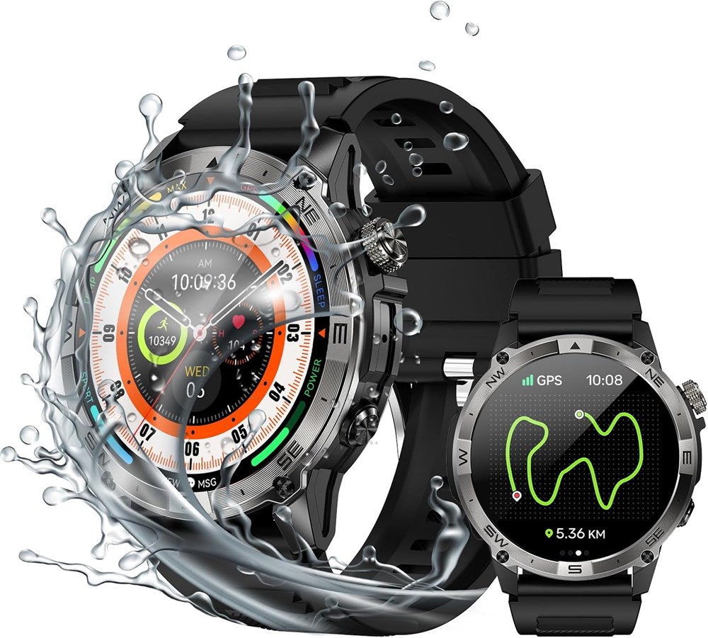 ОсобенностиВодонепроницаемые смарт-часы с GPS для мужчин и женщин, военные спортивные часы на открытом воздухе с водонепроницаемостью 3 АТМ на глубине до 30 метров, Очень длительное время работы в режиме ожидания, Смарт-часы с AMOLED-дисплеем и многофункциональными функциями: вызов/ответ на вызов, компас, измерение высоты, измерение атмосферного давления