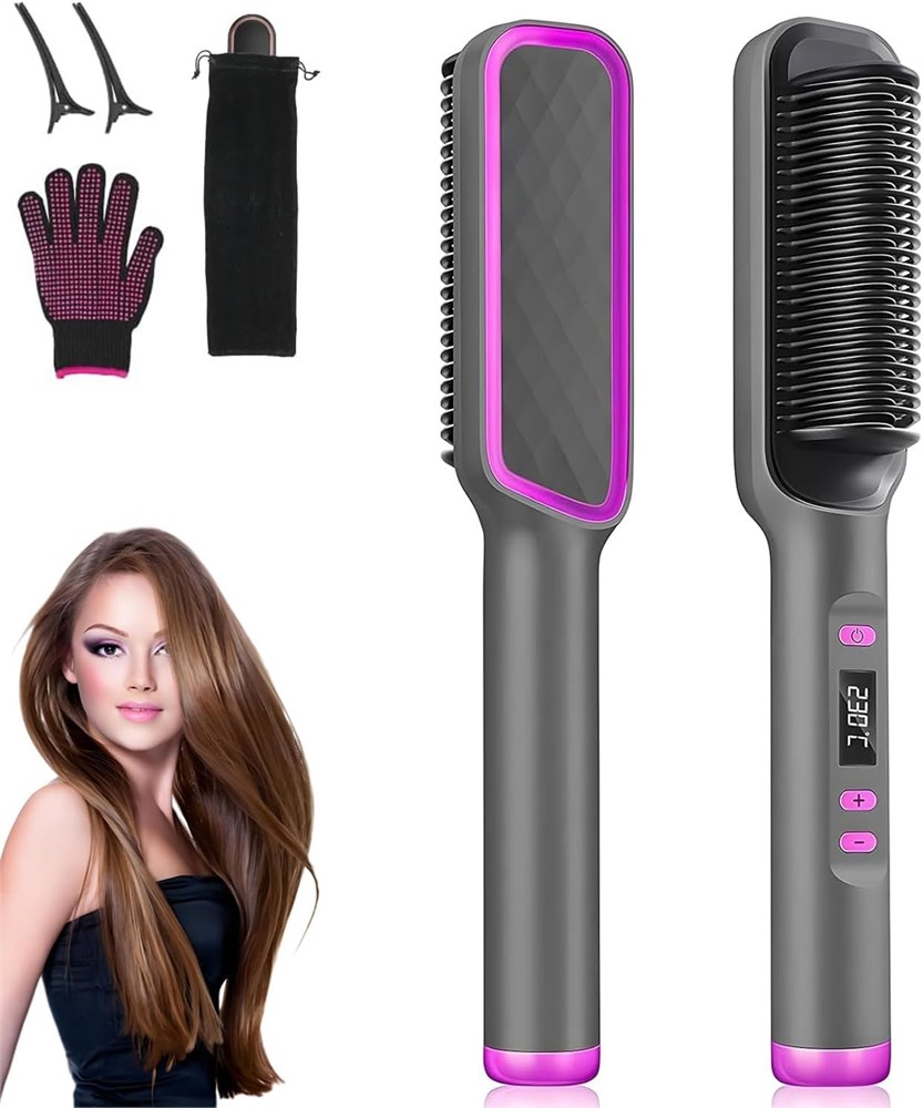 Щетка-выпрямитель для волос MAYCREATE®, 2 в 1, быстрый нагрев и 5 температурных режимов, защита от ожогов, турмалиновое керамическое покрытие с отрицательными ионами, инструмент для укладки волос для женщин.