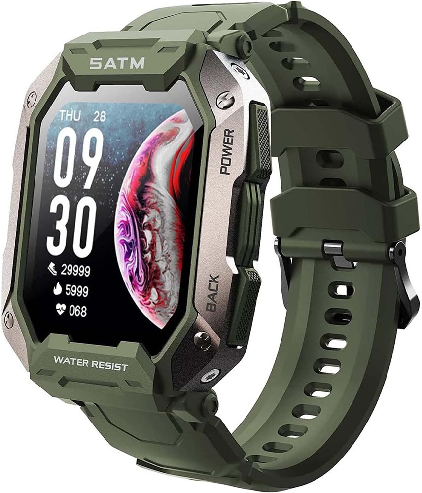 Умные часы для мужчин, тактические спортивные часы для активного отдыха, водонепроницаемые, 5 АТМ, 1,71-дюймовый фитнес-трекер, монитор сердечного ритма и сна, совместимые с Android iPhone Samsung (зеленые)