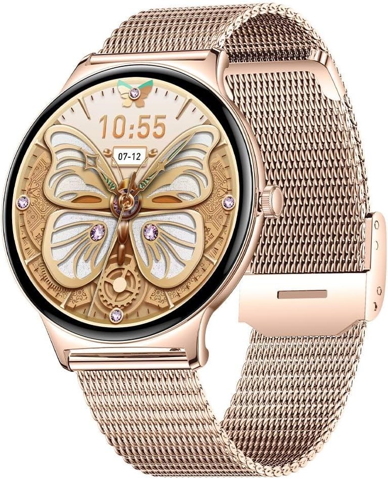 Умные часы Moxedo Glory для женщин с 1,5-дюймовым AMOLED-дисплеем и стальным ремешком — Bluetooth 5.0, звонки, уведомления, фитнес-трекер для женщин, водонепроницаемость IP67, для Android/iOS — розовое золото
